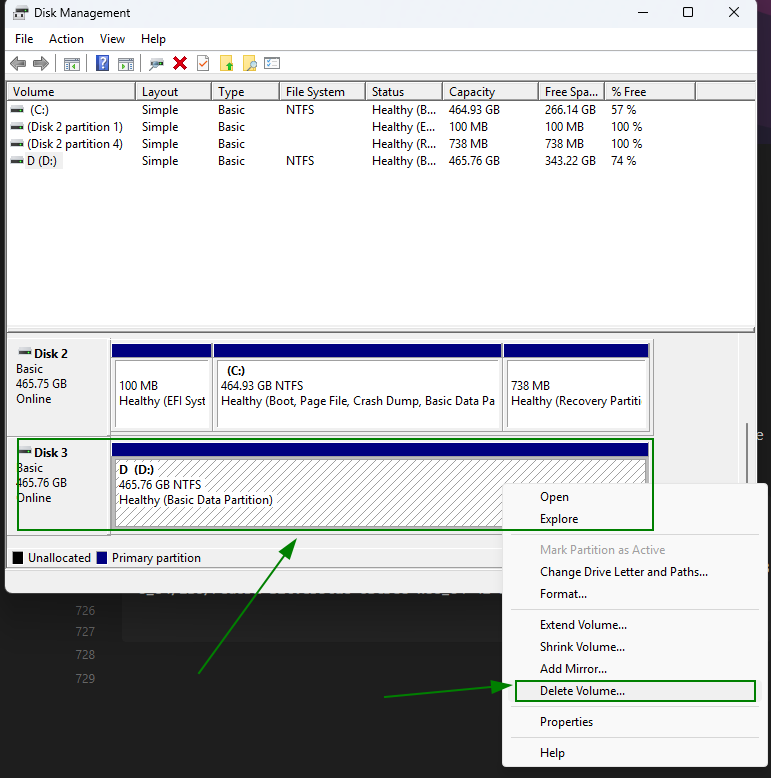 of Windows and delete the volume of that Disk.